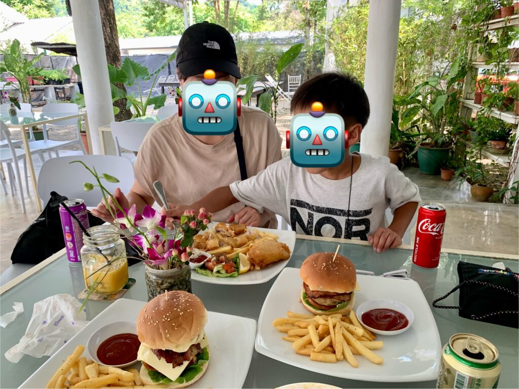 ホテルの敷地内でたくさんのサル、サイチョウを身近に見ることができる。妻と娘はミズオオトカゲにも遭遇。(息子と別行動していたため、男チームは目撃できず)